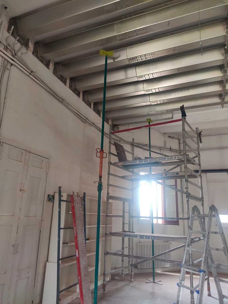 Refuerzo del techo del Castillo de Can Taió, construido a finales del siglo XVII, en Santa Perpètua de Mogoda, mediante la instalación de nuestro sistema MVV, para poder mantener la gran altura de las dependencias a reformar.