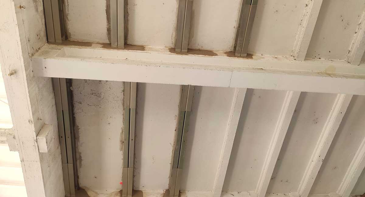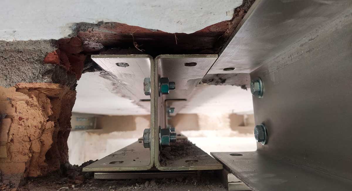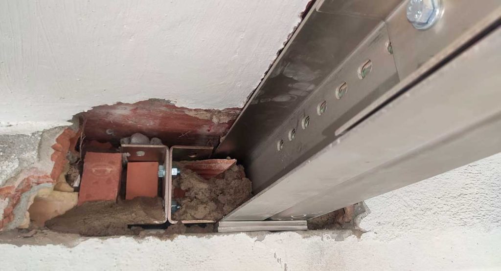 Refuerzo del forjado de una vivienda de Castedelldefels, que sufría aluminosis, con la instalación de nuestro sistema MVV con un apoyo colgado sin soldadura.